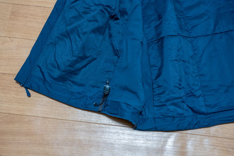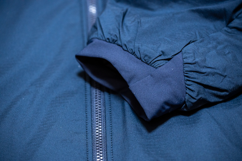 袖口はゴムでわりとしっかり締まるようになっていて風の侵入を防いでくれる.これは通常のAtomやProtonなどArcteryxの化繊ジャケットでよく見られる仕様で安心感がある.
