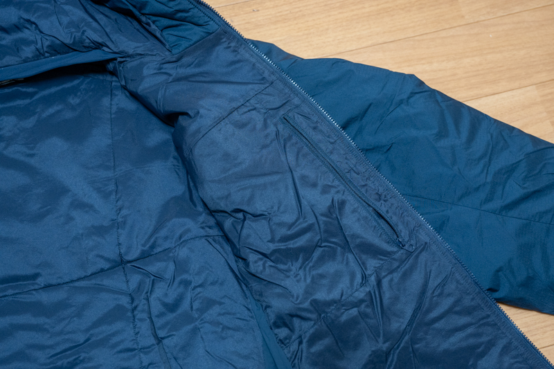同じ画像にうつっているポケットは隠しポケット的な配置になっていて前面からは見えにくくなっている.通常のアトムと異なり,ポケットの内側の生地が起毛したおそらくフリース素材になっておりポケットに手を入れた時に非常に暖かく感じる.